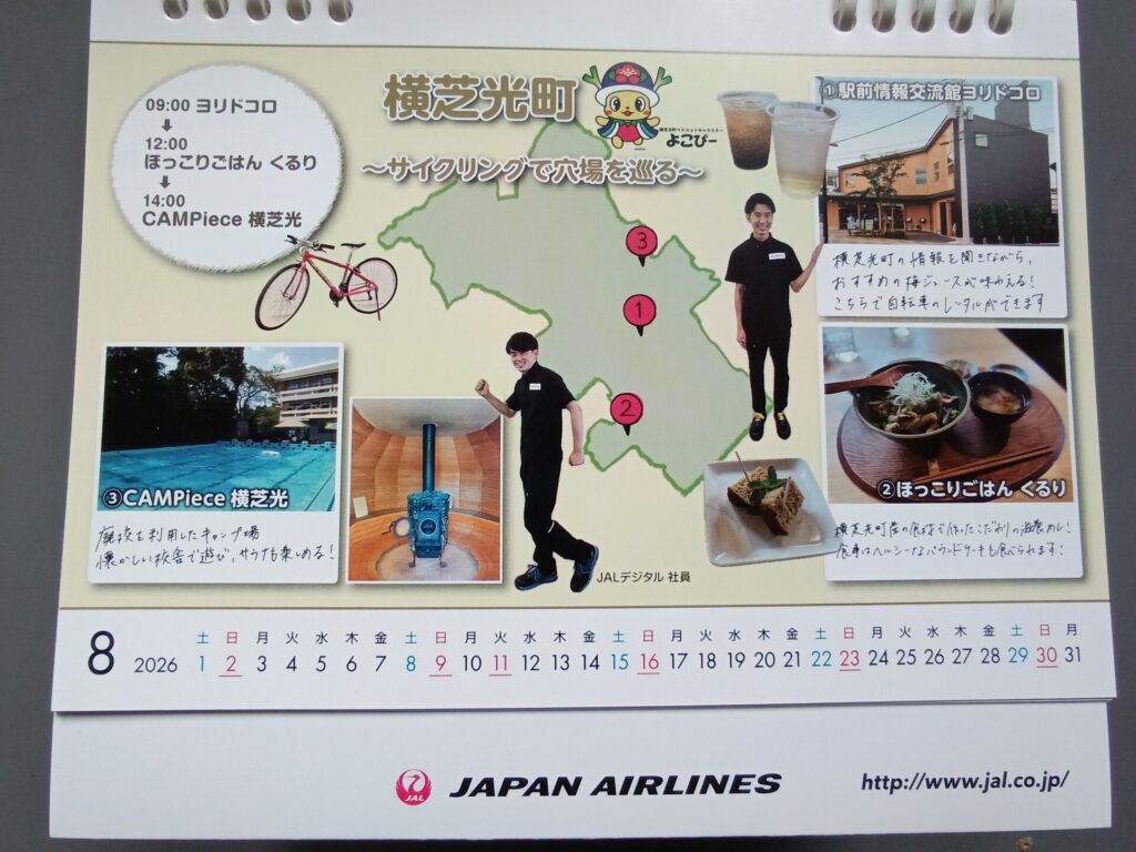 日本航空(JAL)様が千葉県内の地域企業向けに制作されている「つながる成田 2026 CALENDAR」 に、CAMPiece横芝光 が掲載されました。