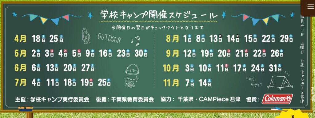 - CAMPiece君津が「学校キャンプ2026」の会場に決定!